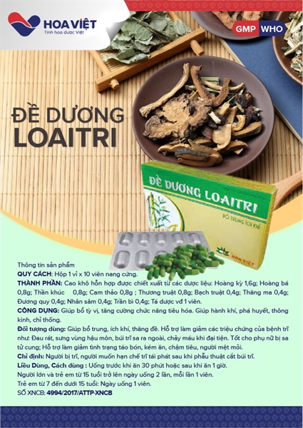 ĐỀ CƯƠNG LOAITRI | Viên Uống Hỗ Trợ Bệnh Trĩ | (Hộp 30 Viên) Dược Hoa Việt - Hộp