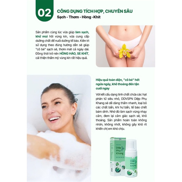 Vượt xa các sản phẩm khác trên thị trường, dung dịch vệ sinh phụ nữ Diệp Phụ Khang được đông đảo hội chị em đánh giá rất cao vì sự AN TOÀN, LÀNH TÍNH, KHÔNG GÂY KÍCH ỨNG, DỊ ỨNG. Hơn nữa lại có khả năng hỗ trợ điều trị viêm nhiễm, nấm ngứa, khí hư bất thường, mùi hôi khó chịu cực kỳ cao. Đây chính là bí quyết giúp “Sạch – Thơm – Hồng – Khít”, chăm sóc và bảo vệ toàn vẹn vùng kín khô thoáng, thơm mát suốt 24h mà chị em không nên bỏ qua.