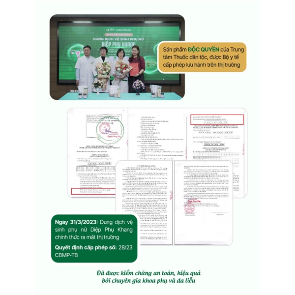 Với những công dụng và ưu điểm vượt trội kể trên, dung dịch vệ sinh phụ nữ Diệp Phụ Khang đã chính thức được Bộ y tế cấp phép lưu hành và ra mắt thị trường. Sản phẩm nhận được sự đón nhận rất nhiệt tình từ đông đảo chị em phụ nữ.