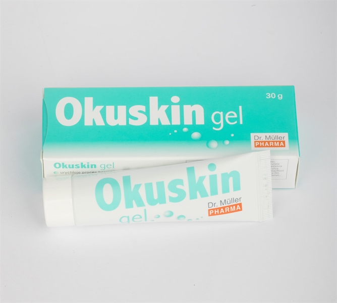 Sản phẩm Okuskin Gel được sản xuất bởi Dr.Muller Pharm S.R.O, có số đăng ký lưu hành tại Việt Nam là 20181320-ADJVINA/170000008/PCBPL-BYT.