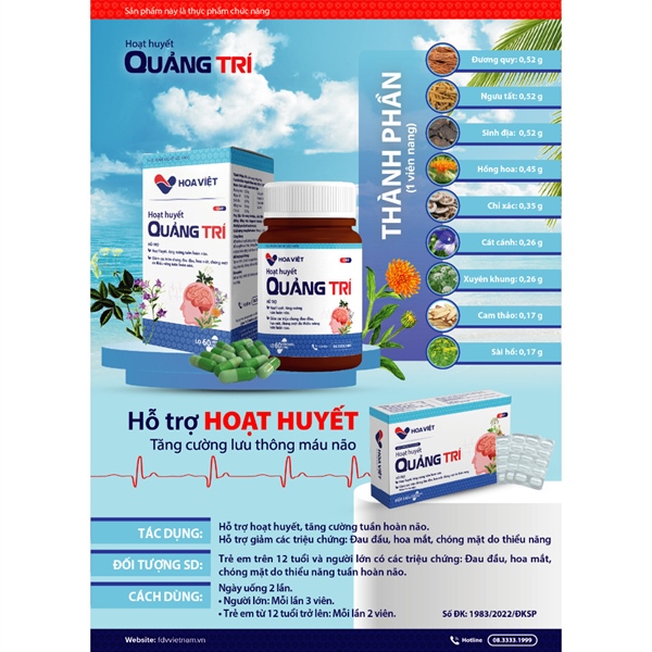 HOẠT HUYẾT QUẢNG TRÍ | Hoạt Huyết Dưỡng Não | (hộp 30 viên) Dược Hoa Việt - Viên