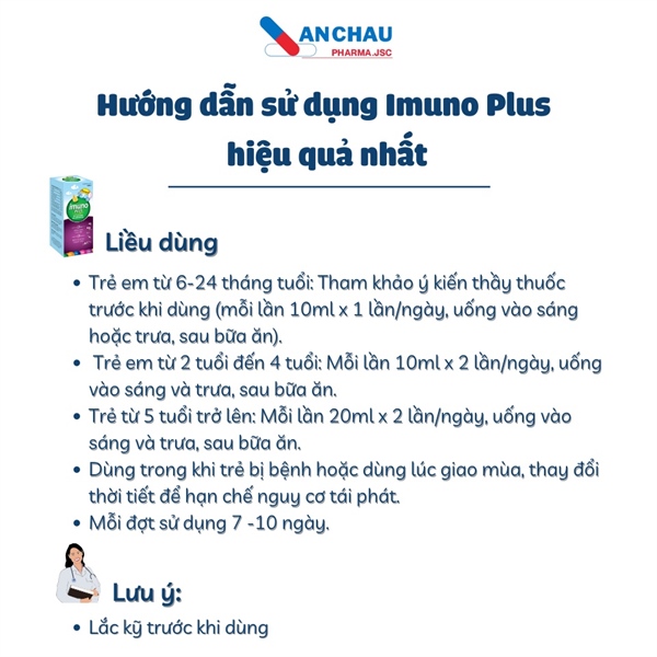 IMUNO PLUS | Siro Tăng Cường Đề Kháng Trẻ Em | (chai 100ml) Dược An Châu - Chai