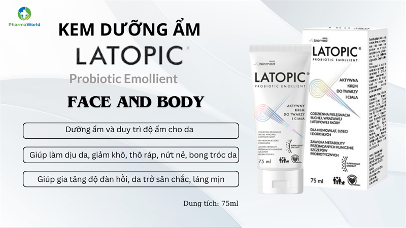 Kem Dưỡng Ẩm Da Em Bé LATOPIC PROBIOTC EMOLLIENT - N.Khẩu Ba Lan | Dùng Cho Trẻ Từ 1 Ngày Tuổi | (Dược Biomedico) - Tuýp 75ml