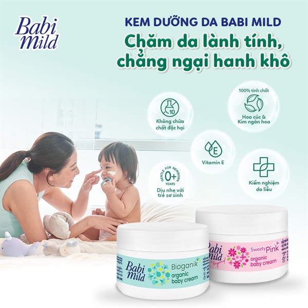 Kem dưỡng da Babi Mild chính là sự lựa chọn hoàn hảo cho bé, không chỉ giúp làn da căng mịn, ẩm mượt mà còn tạo lớp bảo vệ hoàn hảo trước những tác động từ môi trường, phù hợp với mọi loại thời tiết.