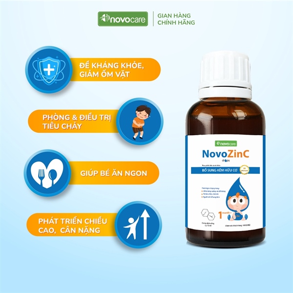 Kẽm Nhỏ Giọt NOVOZINC PLUS | Trị Biếng Ăn, Tăng Đề Kháng Cho Bé | (Dược Novocare) - Chai 30ml