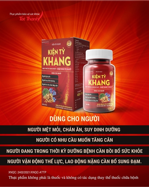 TPBVSK Viên ăn ngon Kiện Tỳ Khang bổ sung protein kẽm và các Vitamin cho cơ thể, hỗ trợ tăng cường tiêu hóa, hỗ trợ ăn ngon, hỗ trợ tăng cường hấp thu, hỗ trợ nâng cao sức khỏe, hỗ trợ tăng cường sức đề kháng, hỗ trợ giảm mệt mỏi.