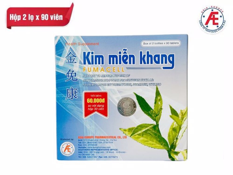 Thực phẩm bảo vệ sức khỏe Kim Miễn Khang hỗ trợ làm giảm nguy cơ tiến triển các triệu chứng của bệnh tự miễn như: Lupus ban đỏ, vảy nến, bạch biến.