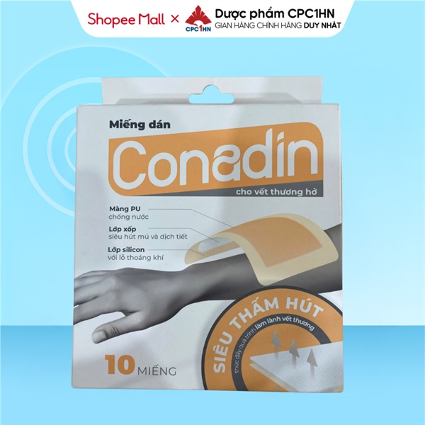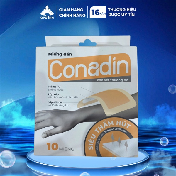 Miếng dán cho vết thương hở Conadin thúc đẩy quá trình làm lành vết thương Hộp 10 miếng