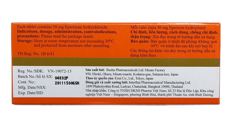 - Không dùng thuốc trong trường hợp quá mẫn với Eperisone.