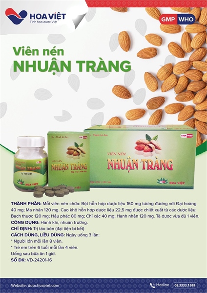 NHUẬN TRÀNG | Thuốc Táo Bón | (Lọ 100 Viên) Hoa Việt - Viên