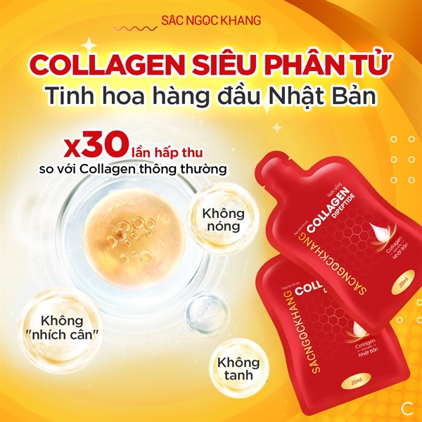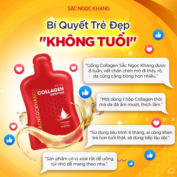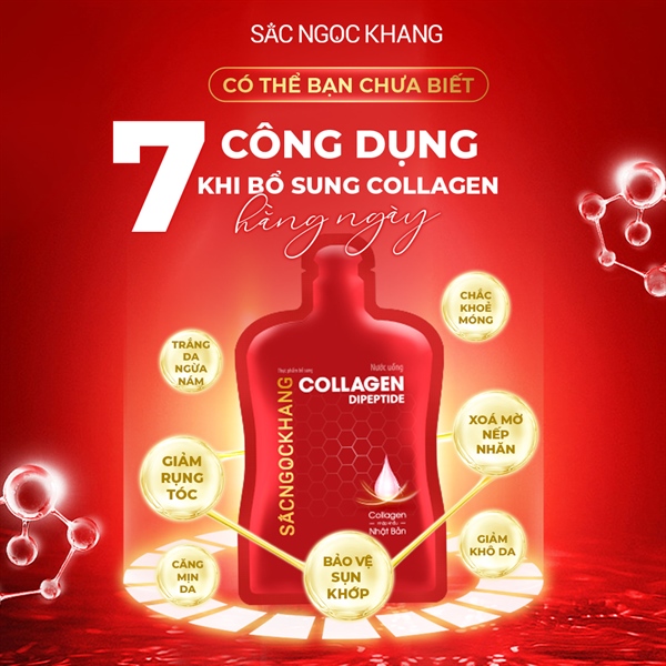 Nước uống Collagen Sắc Ngọc Khang sẽ “trợ thủ” đắc lực của bạn trong hành trình “cản bước” lão hóa và nuôi dưỡng làn da trẻ đẹp “không tuổi” nhờ vào 7 điểm khác biệt chỉ có ở Collagen Dipeptide Sắc Ngọc Khang.