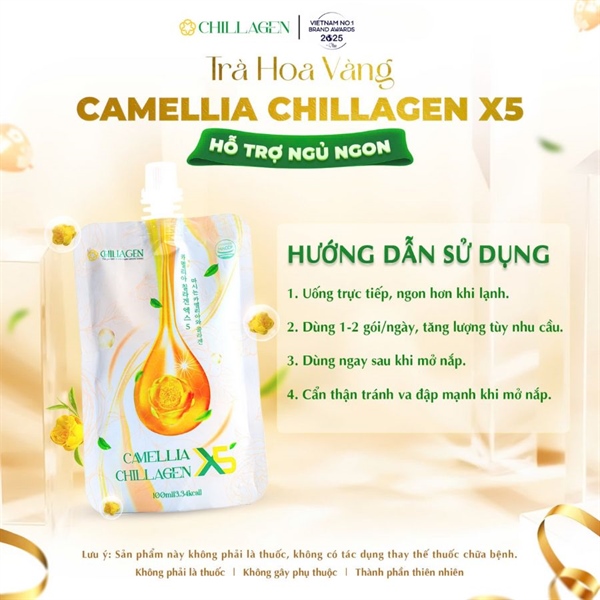 Nước Uống Trà Hoa Vàng Collagen CAMELLIA CHILLAGEN X5 - N.Khẩu Hàn Quốc | Giúp Đẹp Da, Bổ Sung Nội Tiết Tố Nữ | (Dược Maxtrust) - Gói 100ml