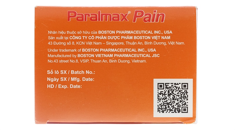 Thuốc Paralmax pain là một sản phẩm của Boston, hiện được phân phối trên thị trường với dạng hộp 120 viên nén bao phim. Trong mỗi viên nén Paralmax pain có chứa các thành phần sau: