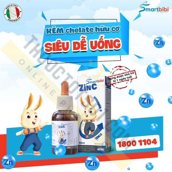 SMARTBIBI ZINC - NK Italy | Kẽm Nguyên Tố Nhỏ Giọt TE | (chai 30ml) Dược Eurolap - Chai