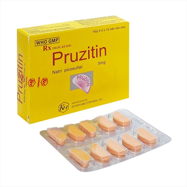 PRUZITIN 5mg | Thuốc Nhai Trị Táo Bón | (hộp 3 vỉ x 10 viên) Dược Khánh Hòa