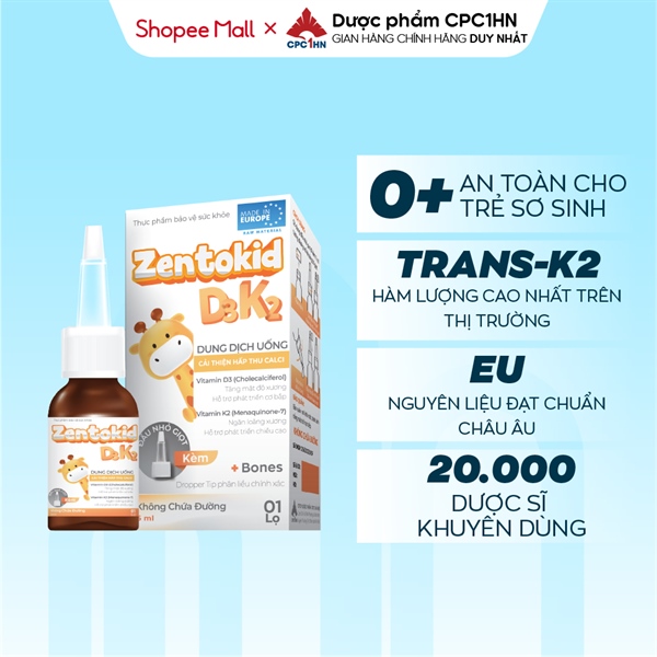 ZENTOKID D3K2 | Vitamin D3 & K2 Nhỏ Giọt Trẻ Em | (Dược CPC1HN)