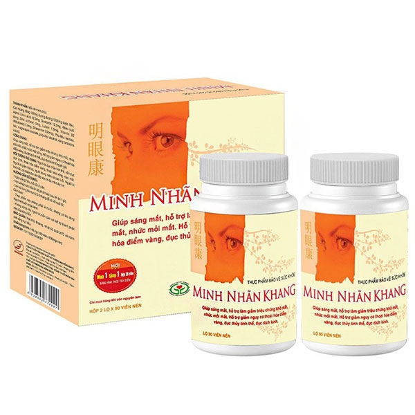 Minh Nhãn Khang là viên uống bổ mắt từ 7 thành phần hỗ trợ giảm nguy cơ các bệnh về mắt như thoái hóa điểm vàng, đục thủy tinh thể, đục dịch kính; giúp sáng mắt và làm giảm khô mắt, nhức mỏi mắt, chảy nước mắt sống, chấm đen.