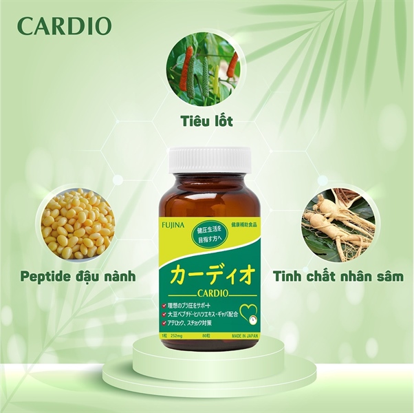 Viên Bổ Tim CARDIO - NK Nhật Bản | Hỗ Trợ Hạ Huyết Áp | (hộp 80 viên) Dược Fujina - Hộp