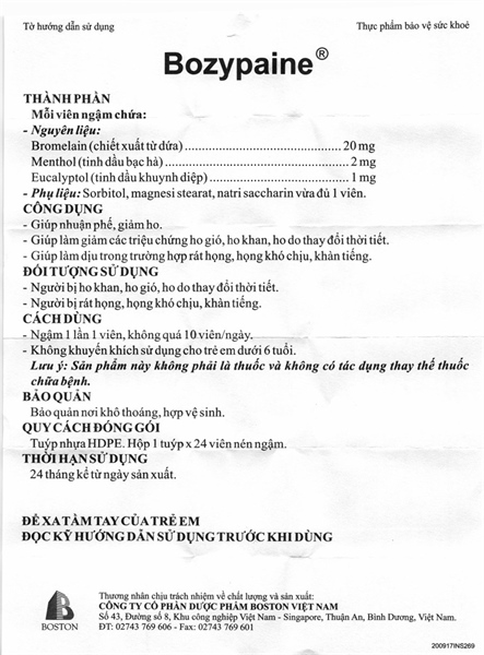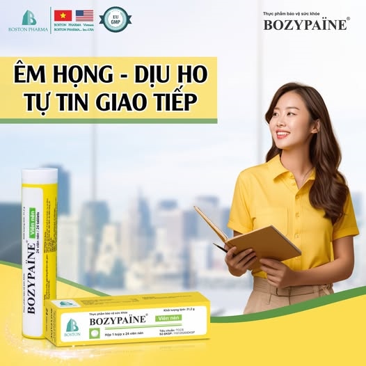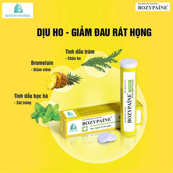 VIÊN NGẬM BOZYPAINE - L.Doanh Mỹ | Giảm Ho, Đờm & Đau Rát Họng | (Dược Boston) - Tuýp 24 viên