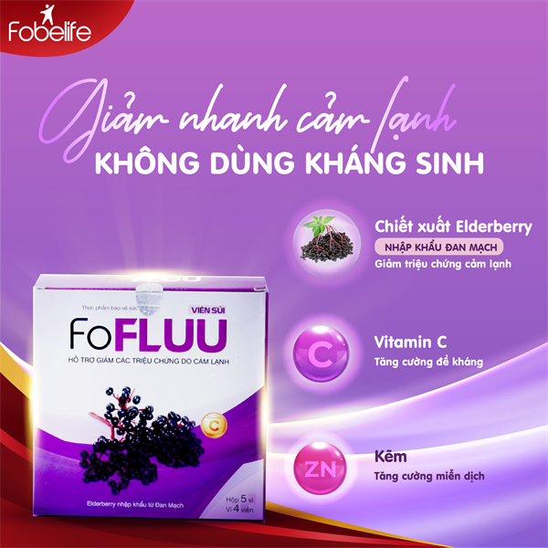 Viên sủi FOFLUU với chiết xuất Quả cơm cháy theo công nghệ BerryShield bảo vệ hoạt chất tối đa, nhập khẩu từ Đan Mạch giảm nhanh các triệu chứng do cảm lạnh gây ra như ho, sổ mũi, sốt đau, đau đầu,… chỉ sau 2 ngày sử dụng