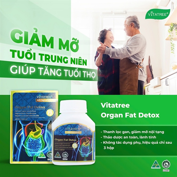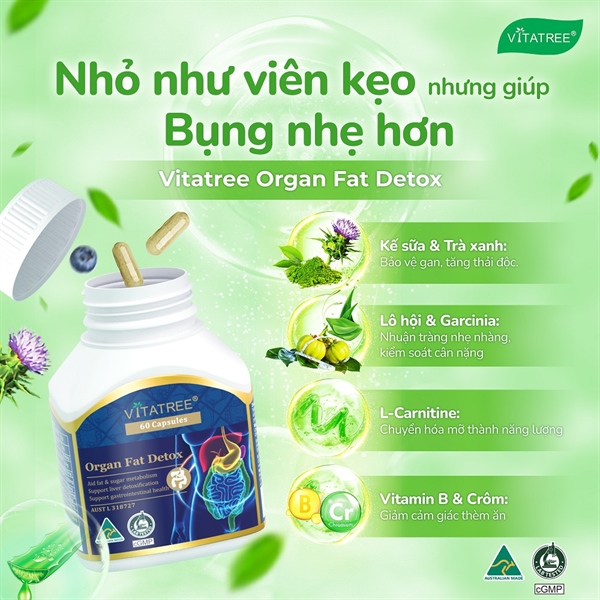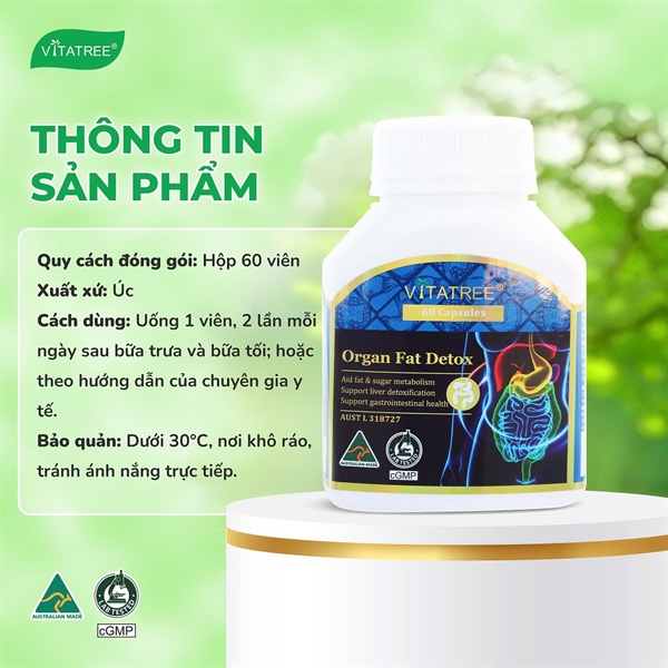 Viên Uống ORGAN FAT DETOX VITATREE | Hỗ Trợ Thải Độc Mỡ Nội Tạng, Mỡ Máu | (N.Khẩu Australia) - Hộp 60 viên