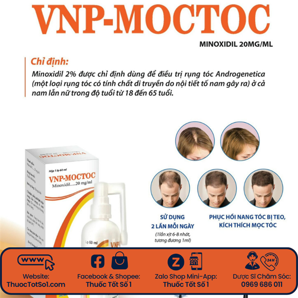 VNP-MOCTOC - CPC1HN | Thuốc Xịt Mọc Tóc, Trị Hói Đầu | (lọ 60ml) Dược NovoCare - Lọ