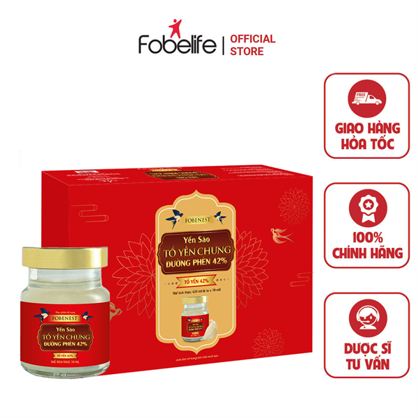 Yến Sào Tổ Yến Chưng Đường Phèn Cao Cấp 42% (hộp 6 lọ 70ml) Dược Fobelife
