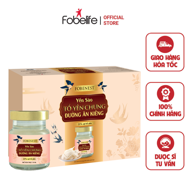 Yến Sào Tổ Yến Chưng Đường Ăn Kiêng 21% (hộp 6 lọ 70ml) Dược Fobelife