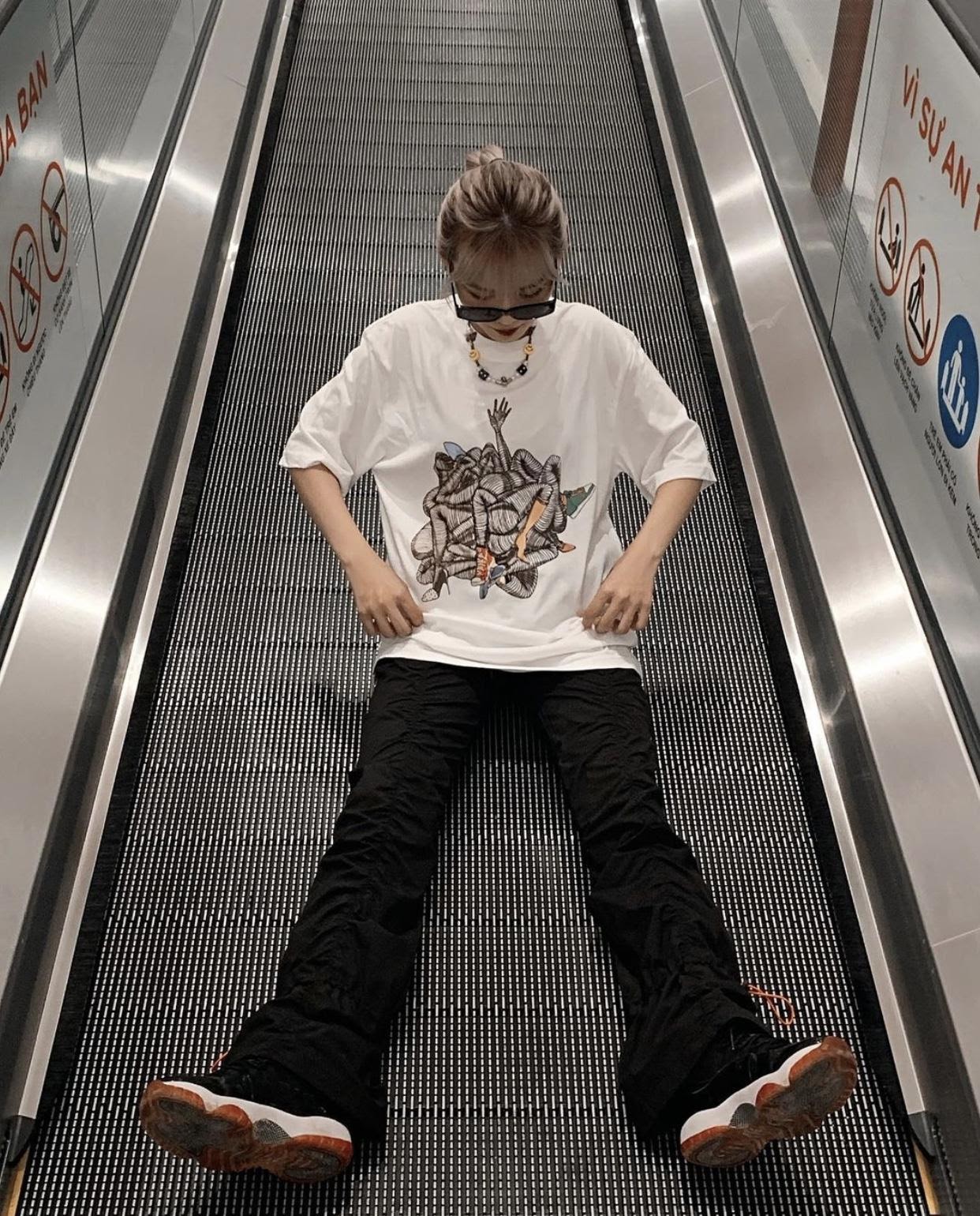 Phông basic kết hợp với quần rút dây và giày thể thao thương hiệu Nike, cô nàng @heli_a471 đã khéo léo mix thêm vòng cổ và kính râm khiến outfit trông cực cool.
