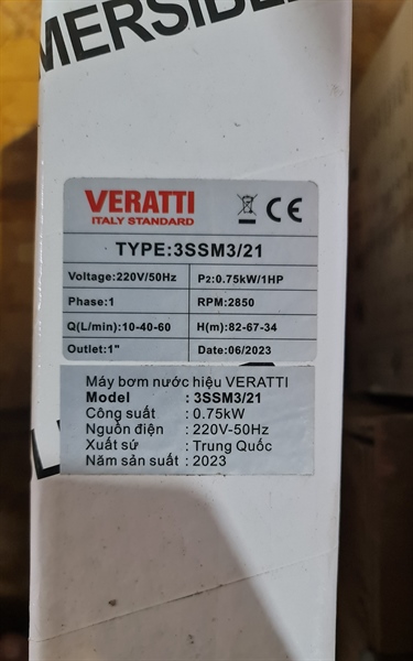 Máy bơm giếng khoan 1,1kw (3SSM3/31) Veratti