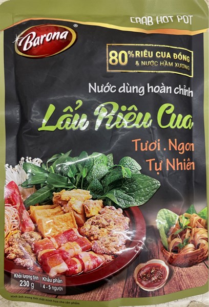 GV. NƯỚC DÙNG HOÀN CHỈNH BARONA LẨU RIÊU CUA GÓI 230G