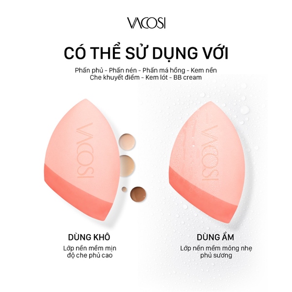 Bông Phấn Nước Vát Xéo Phủ Silicone Vacosi PH06 - Hộp