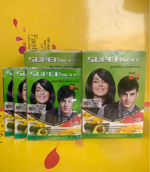 Dầu gội nhuộm tóc bạc SUPERNOVA làm thay đổi màu tóc và che phủ tóc bạc dễ dàng, nhanh chóng chỉ với dầu gội nhuộm tóc. Dễ sử dụng, chỉ cần một lần gội đầu đã có thể thay đổi màu tóc và che phủ tóc bạc 100%, hương thơm chiết xuất từ thiên nhiên. Ngoài ra sản phẩm còn có tác dụng nuôi dưỡng da đầu dịu nhẹ, bóng khỏe từng sợi tóc.