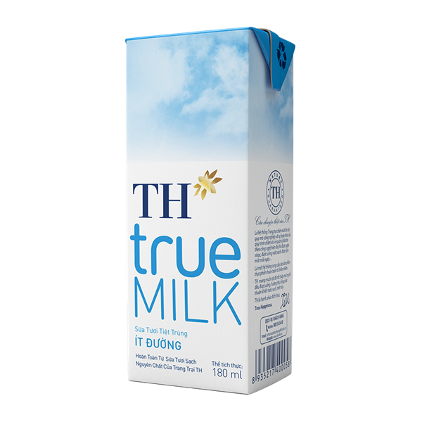 Sữa tươi TH True milk ít đường hộp 180ml - Lốc