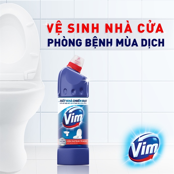 Nước tẩy toilet Vim chuyên dụng với công thức đậm đặc, sản phẩm giúp đẩy lùi các vi trùng gây bện.