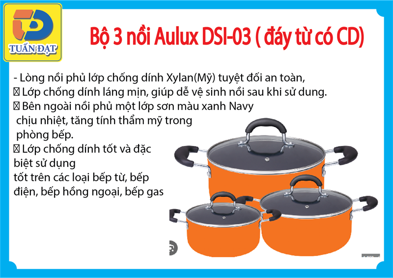 Bộ nồi Aulux DSI03 - bộ 3 - Đáy từ - Bộ