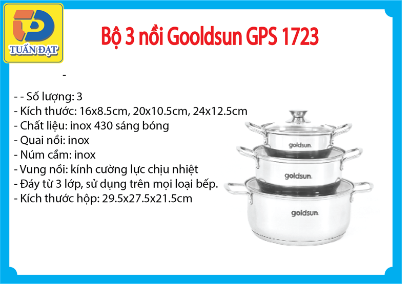 Bộ nồi Goldsun 3 đáy GPS1723 ( 3 chiếc ) - cái