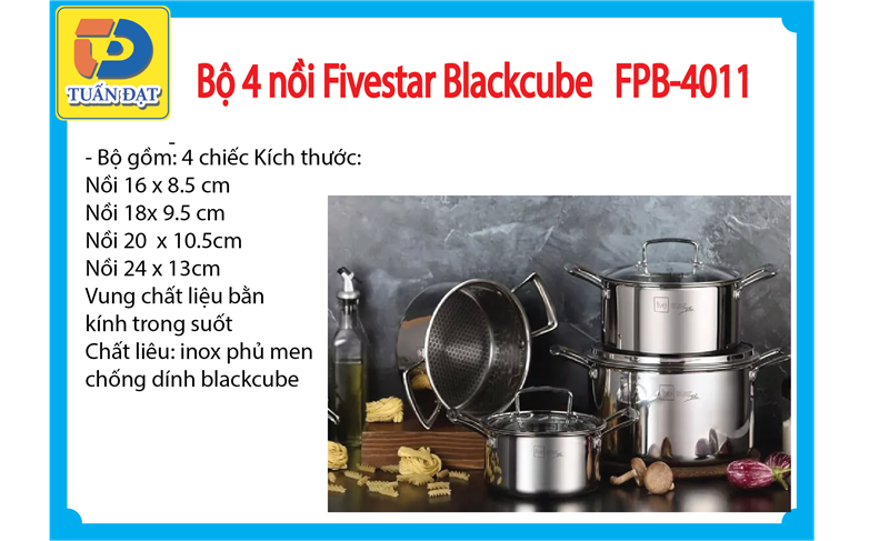 Bộ 4 nồi Fivestar Blackcube FPB4011