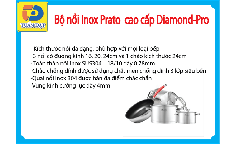 Bộ nồi 4 inox 304 Prato ( 4 chiếc )