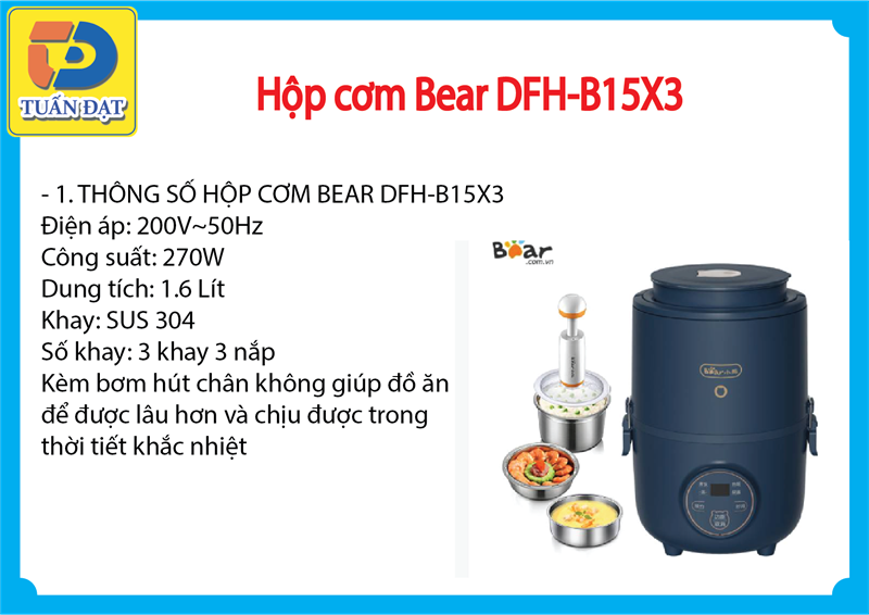 Hộp ủ cơm Bear DFH-B15X3 - cái