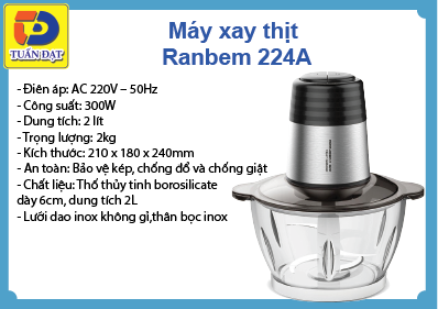 Máy xay thịt Ranbem 224A (cối thủy tinh)
