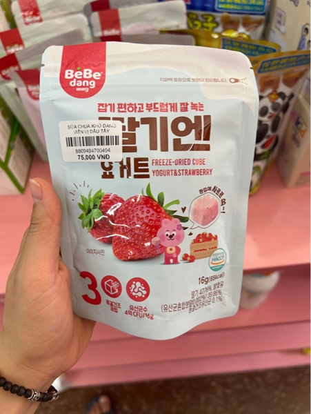SỮA CHUA KHÔ DẠNG VIÊN VỊ DÂU TÂY BEBEDANG HÀN QUỐC YOGURT CUBE STRAWBERRY 16G