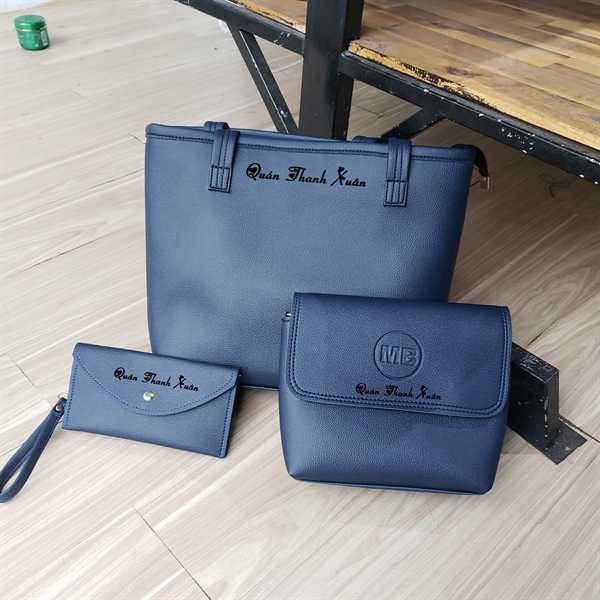 Bộ 3 túi công sở HD xanh lam da hạt kim