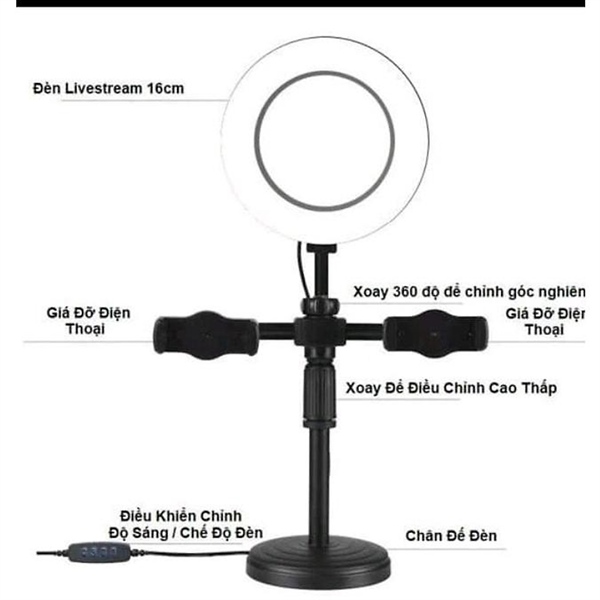 Đường kính đèn lên tới 16cm, tùy chỉnh độ sáng: màu trắng, vàng, sáng tối tùy thích