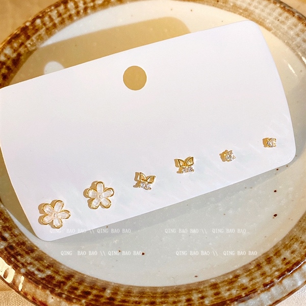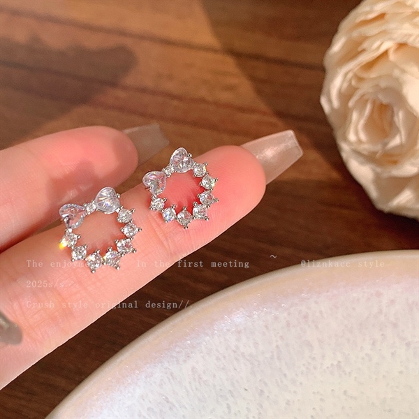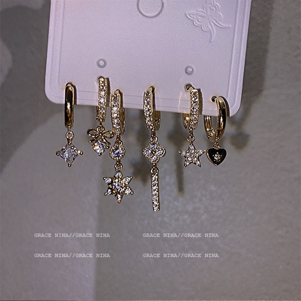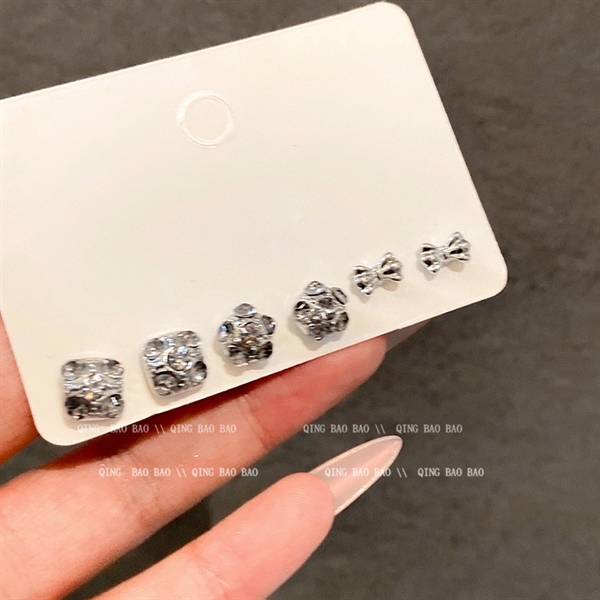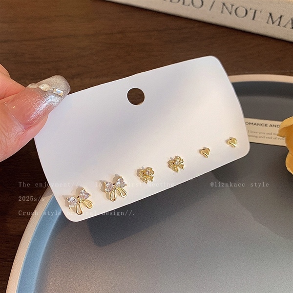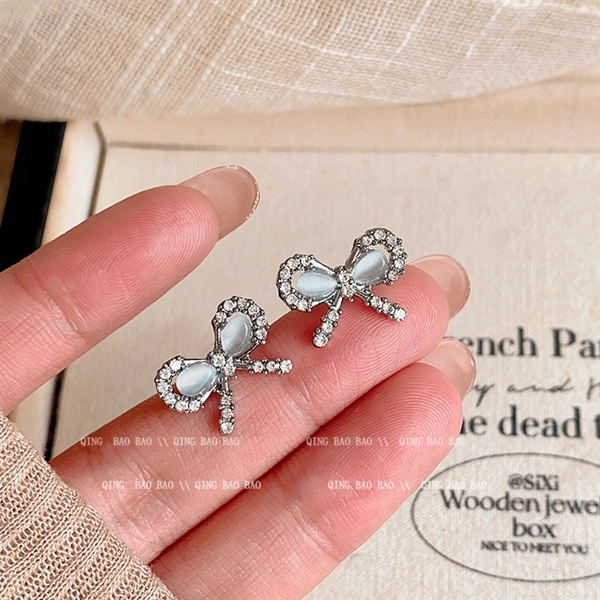 Set khuyên tai bấm nơ sao đính đá cao cấp
