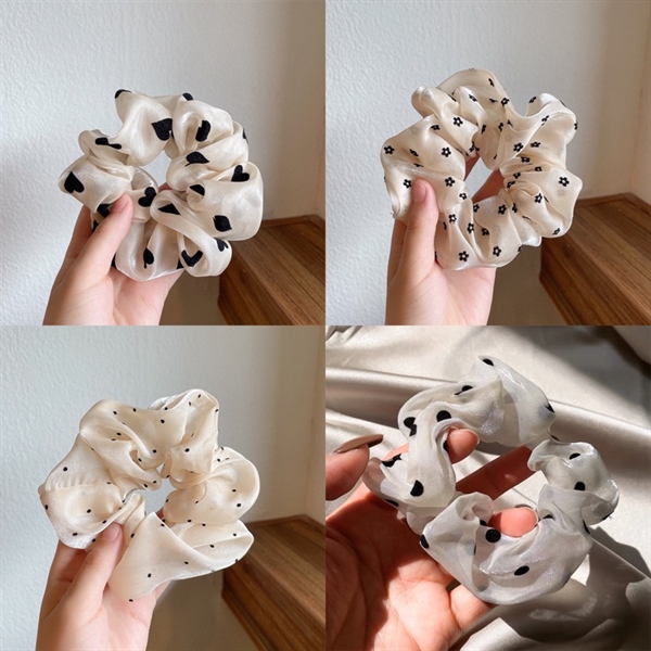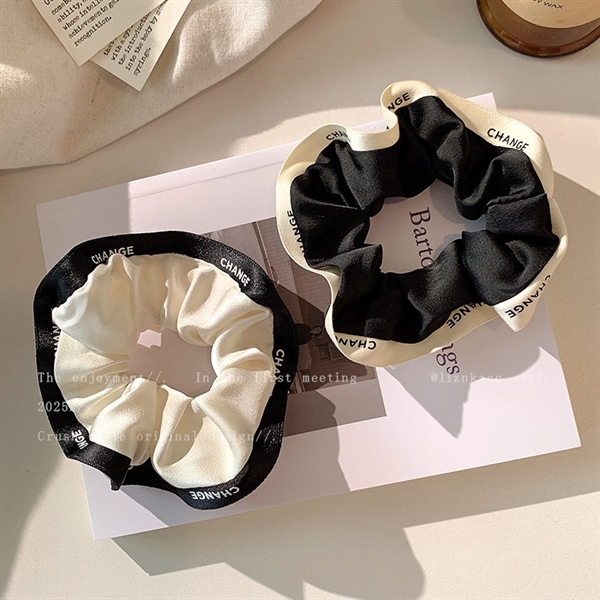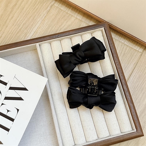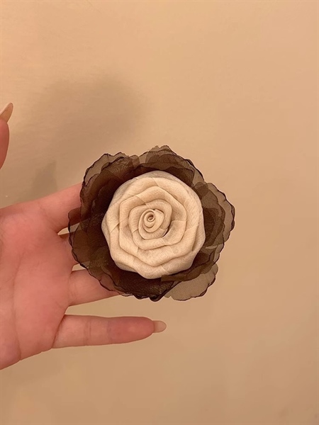 Kẹp tóc hoa hồng vải tơ - Đen trắng