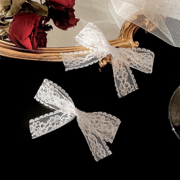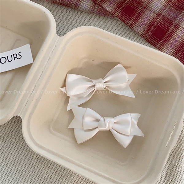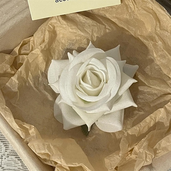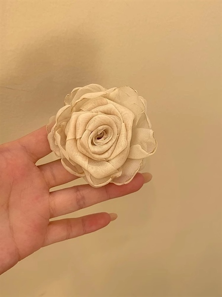 Kẹp tóc hoa hồng vải tơ - Trắng