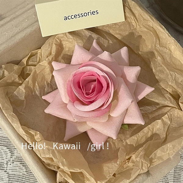 Kẹp tóc hoa hồng vải tơ - Hồng phấn