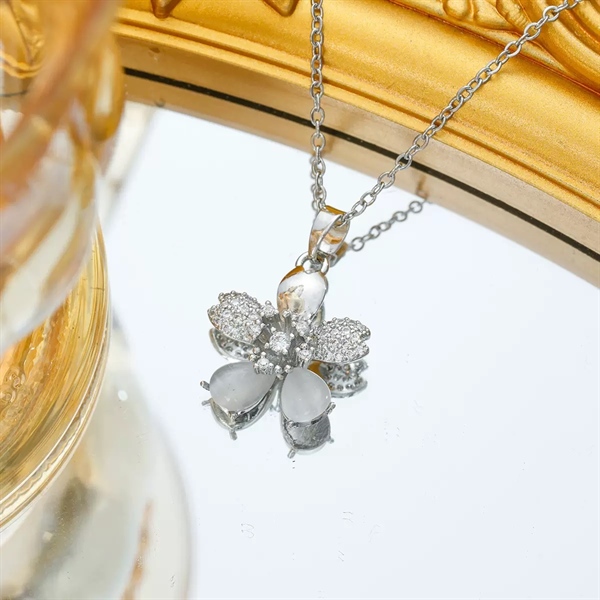 Dây chuyền hoa 5 cánh to đính đá zircon titan