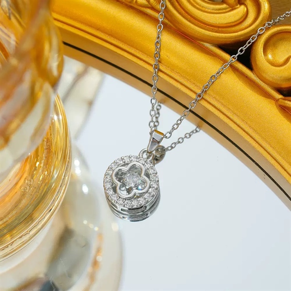 Dây chuyền cỏ 4 lá full đá đính hạt tròn titan